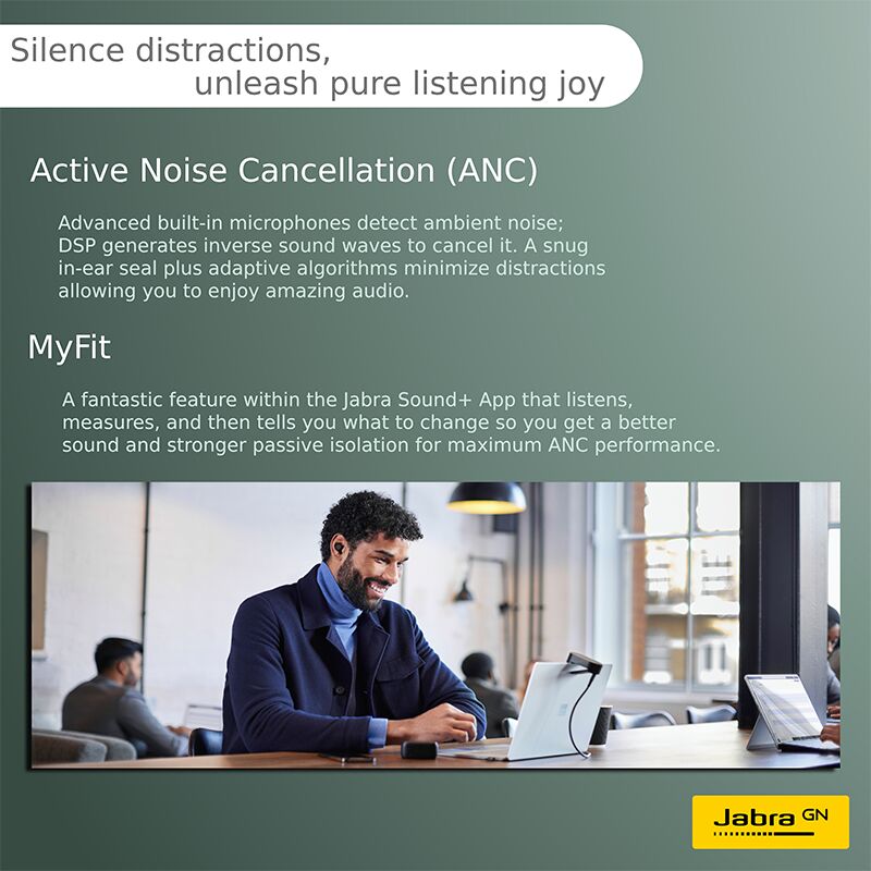 Look no further than Jabra Evolve2 Buds USB-C MS. These earbuds are designed with business professionals in mind, with features that make crystal-clear calls and ultimate productivity possible.